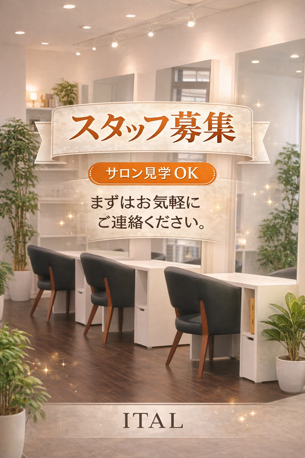 - 2011年3月にITALにオープニングスタッフとして参加。翌々年に出産のため筆を置く。完全プライベートサロンで常に腕を磨き、2019年に更なる飛躍を求めITALに復活!!